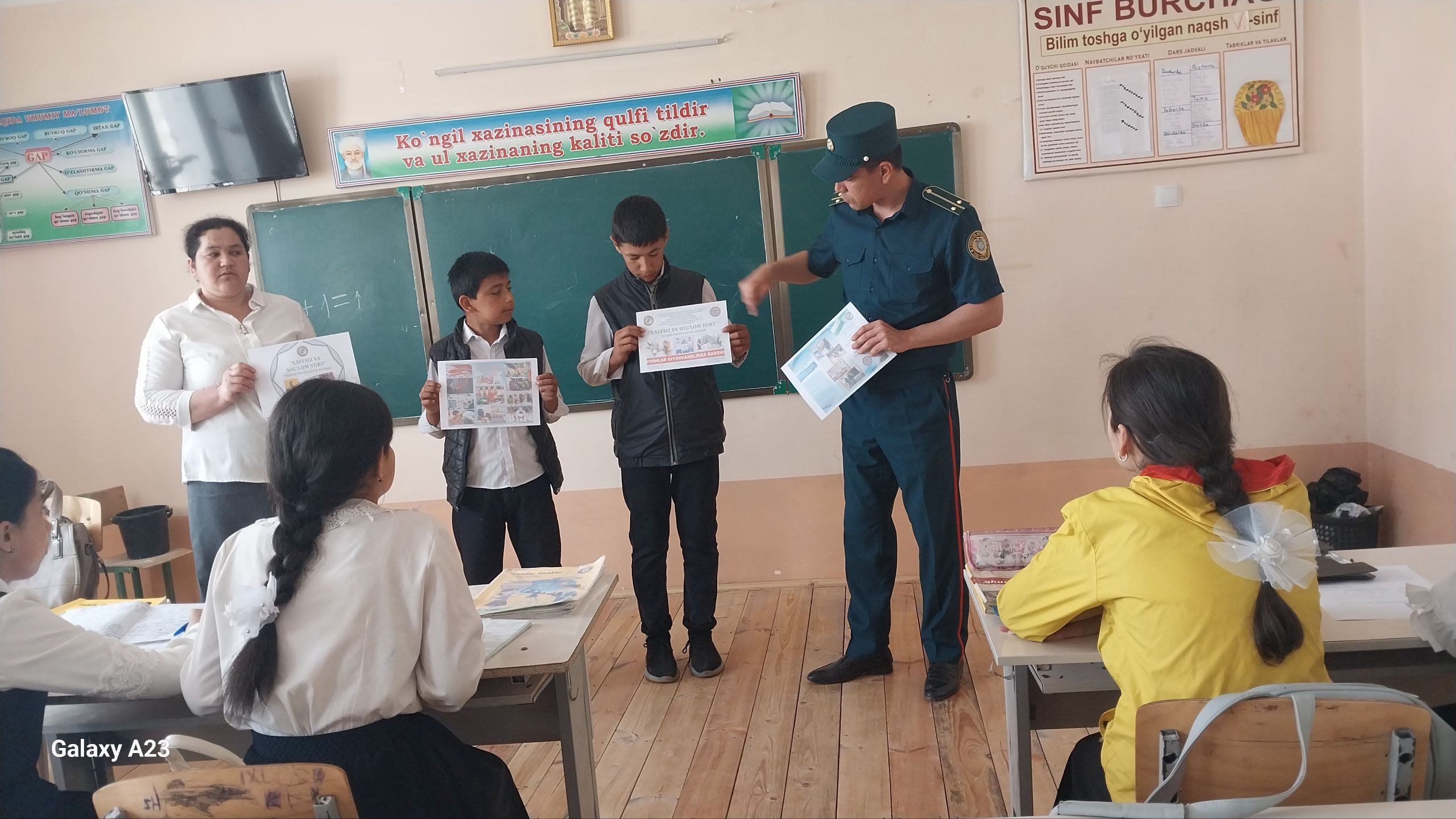 Xorazm viloyati Ichki Ishlar Boshqarmasi tomonidan "Xavfsiz va sog'lom yurt" tezkor profilaktik tadbiri yuzasidan Shovot tumani Komiljon ota mahallasida joylashgan 47-maktabiga rasmlar ilinib, o'quvchilar bilan targ'ibot ishlari olib borildi.
